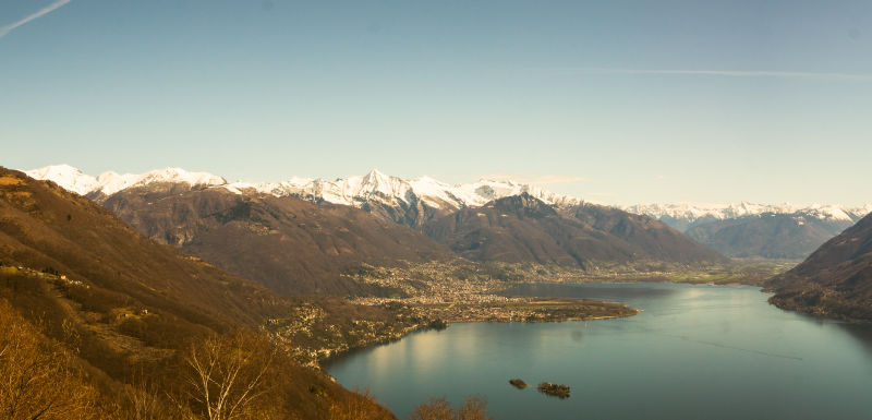 Seeblick über Brisago & Aerial Panorama am alten Flugplatz Ascona